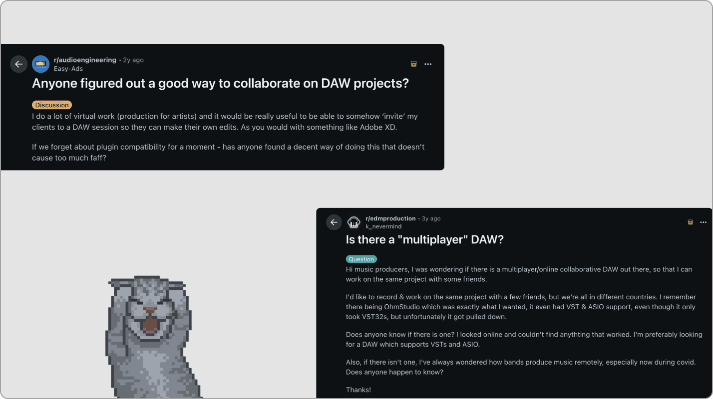 I notice that music is a collaborative process similar to other art forms and disciplines, but DAWs have been built for solo work since the beginning until these digital days. The internet seems to agree with me.