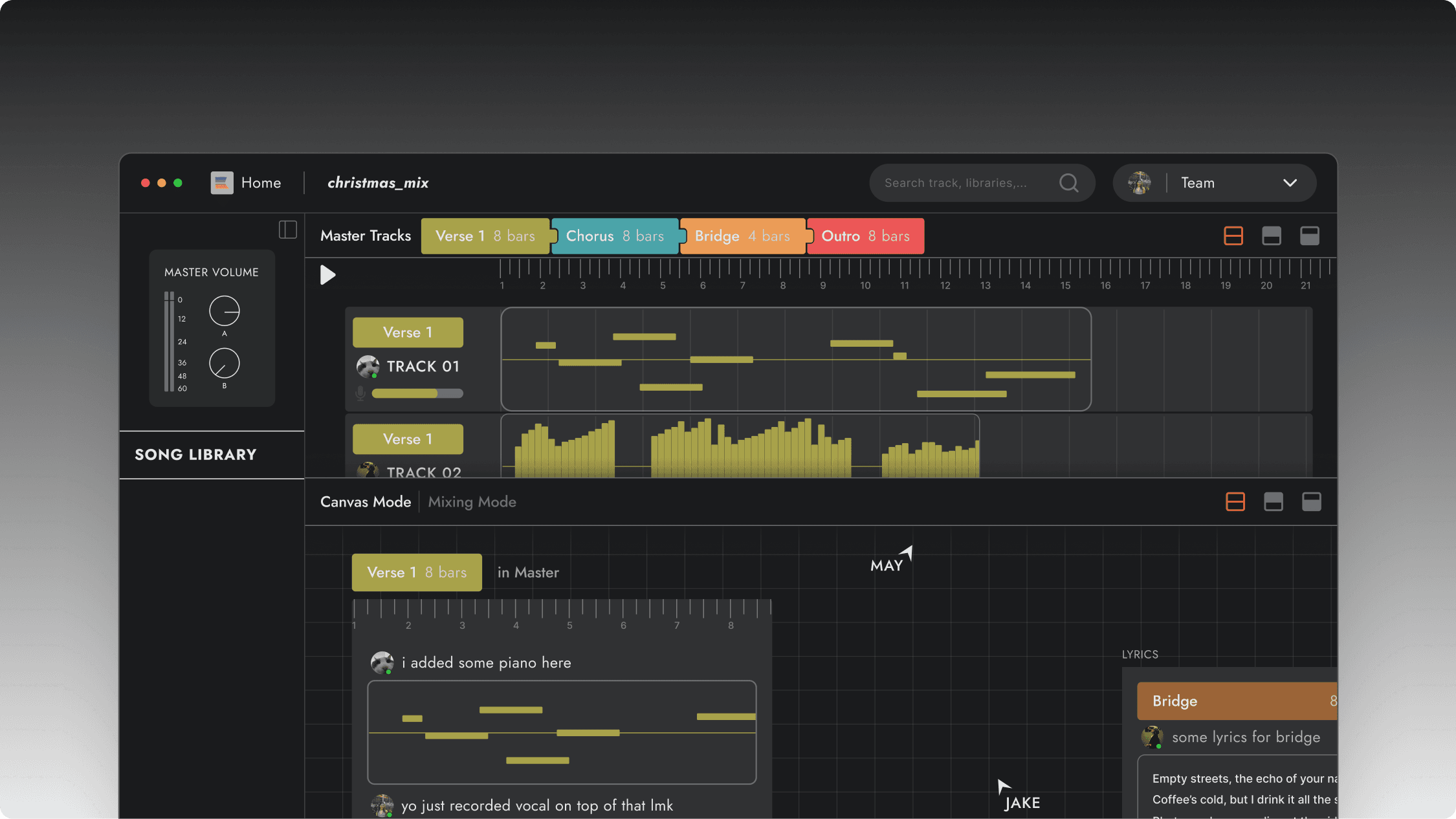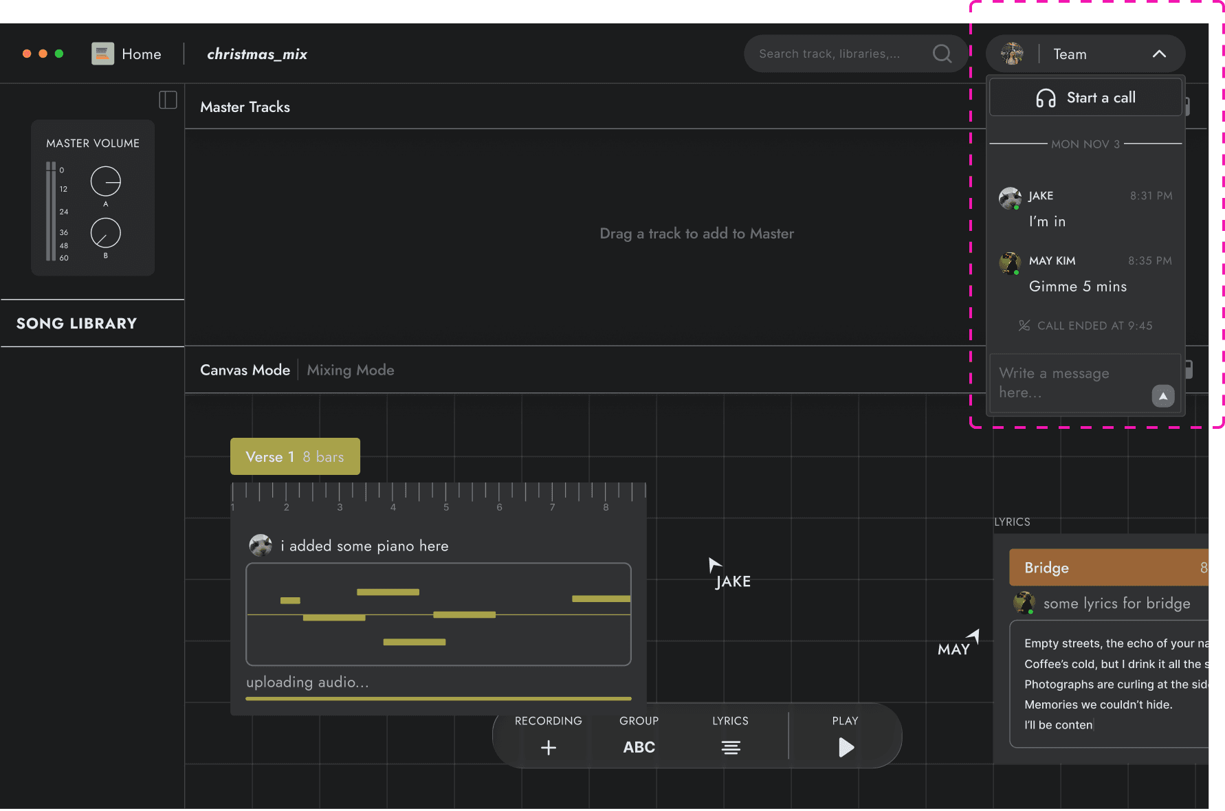 Quickly put down a musical idea with teammates to canvas with no time restrictions