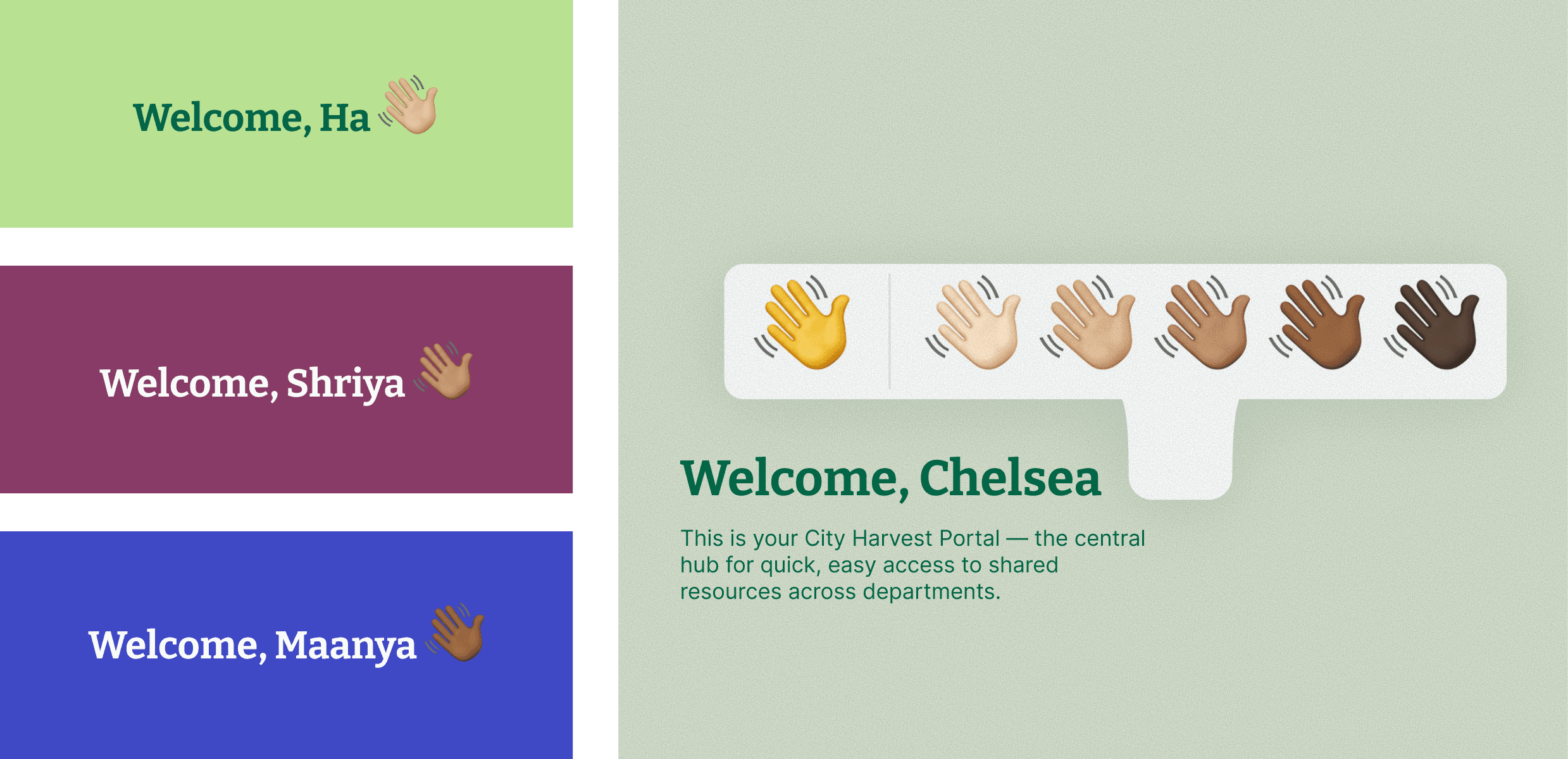 City Harvest is such a warm and competent community that always pushing and encouraging each other to do impactful and meaningful work. As a final touch, I translated that dynamic from real-life into the portal by sprinkling in emojis that can be customized by each employee.